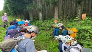 2日目は簡単な岩場を登り懸垂下降を体験するという課題で最近整備されたばかりのGGルートを使用して講習を行いました。