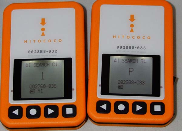携帯した小さな子機(20gの発信機)を、親機(70gの受信機)で探索するヒトココという捜索機器があります。予定を過ぎても帰ってこない場合など家族や関係者からの依頼で、ヘリコプターから親機で捜索するほぼ全国の山域をカバーするココヘリという民間のサービスがあり、また34都道府県の警察航空隊や防災ヘリが受信機を導入しています。上空では電波が良く飛ぶことから広い山域を短時間で捜索ができ、各地で大きな成果を上げています。