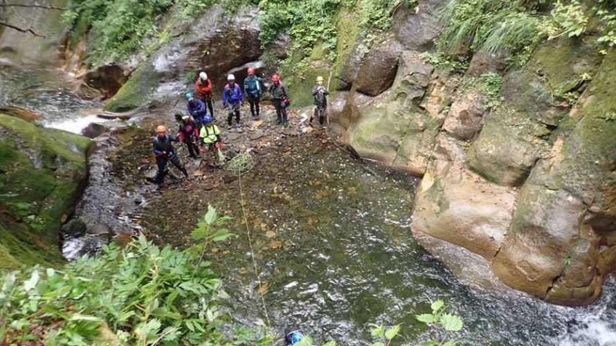 (時間により—13:00 2段10m滝まで進む)・沢登終了—(大東岳裏コース下山)