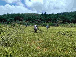 8/6栗駒世界谷地ヨシ刈り好天の中実施してきました。